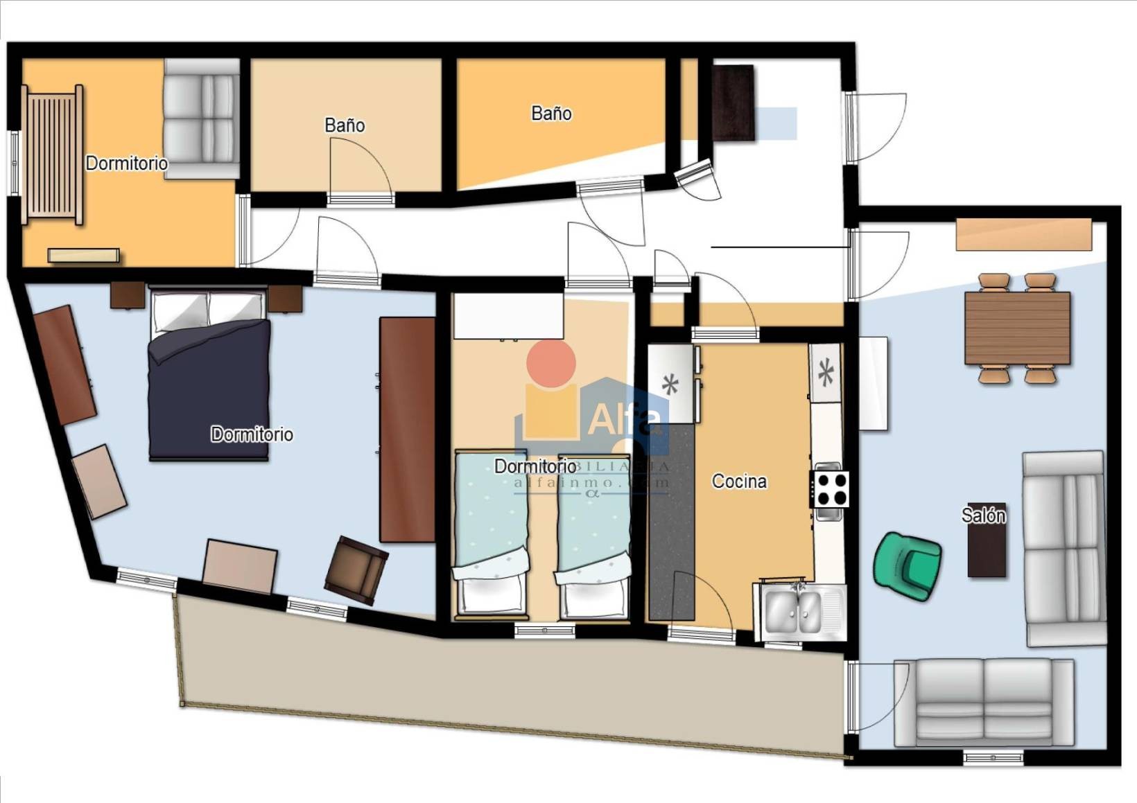 La vivienda cuenta con 104 m² construidos, distribuidos de forma muy funcional. Dispone de tres habitaciones, perfectas para garantizar comodidad y descanso, y dos baños uno con bañera y otro con posibilidad de adaptar plato de ducha.